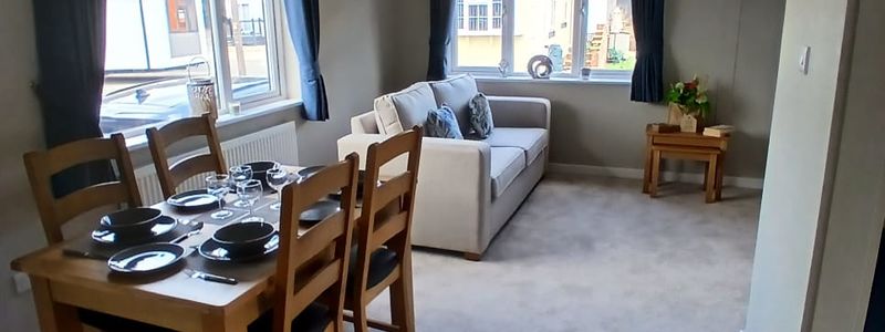 Fully furnished and ready to move in, this home offers a semi open plan fully fitted integrated kitchen in blue, a large L-shape living and dining area complete with table and four chairs. The hall leads to the family bathroom and two generously sized double bedrooms, the master boasting a walk-through wardrobe and dressing area, into the en-suite shower room. With vaulted ceilings to the main living areas and usb charging in both bedrooms, this home has a lot to offer at a fantastic price.