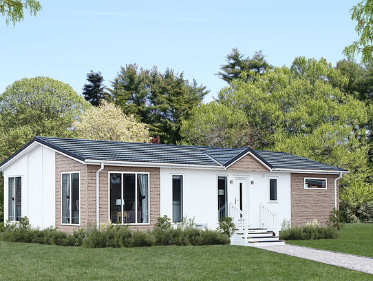 The Serenity is a modern, welcoming park home with flexible spaces and plenty of room to unwind. Its stylish exterior features sleek cladding, smooth render, and a charming entrance dormer with a built-in bench.