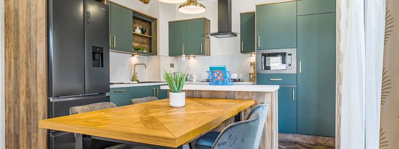The kitchen features a central island, American-style fridge-freezer, and ambient lighting, perfect for hosting. French and bifold doors connect the lounge to a private patio. Built for efficiency and safety, with high-grade insulation and smart systems.