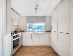 Its bright open‑plan living area features large windows, plush sofas, stylish furnishings, and an extending dining table—perfect for relaxing or entertaining. The fitted kitchen combines practicality and style with integrated appliances, generous storage, a built‑in oven, gas hob, stainless steel splashback, and USB charging point. The primary bedroom includes a walk‑through dressing area and en‑suite, while the second bedroom offers a cosy space for guests.