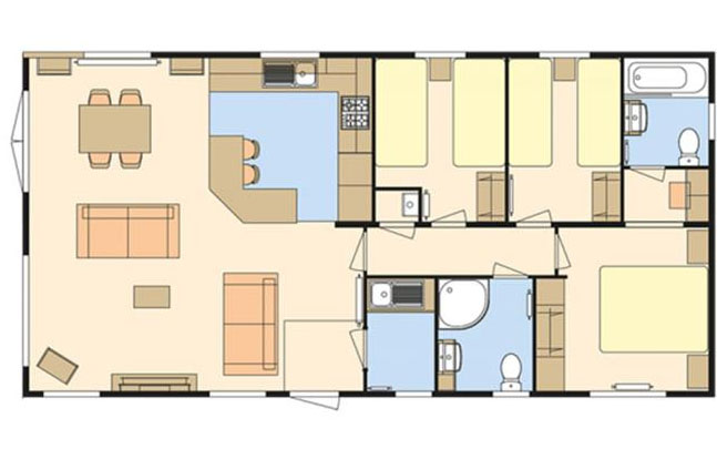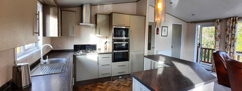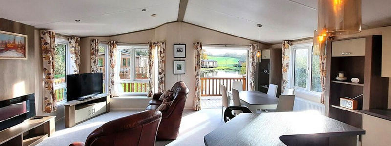 Located on the fully residential Orchard Lakes park in Winkleigh, this beautifully presented 40’ x 20’ Atlas Lilac lodge offers relaxed lakeside living for the over 50s. Fully furnished and ready to move into, the home features a bright open plan lounge, dining and kitchen area with integrated appliances, plus a separate utility room.