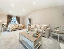 Inside, the central kitchen-diner features integrated appliances, an electric oven and hob, and a cosy dining area. The lounge offers a relaxing space with a contemporary fire suite and two ‘Lonsdale’ sofas. The main bedroom includes a dressing area; the second bedroom is equally inviting. A sleek main bathroom, vaulted ceilings, and BS 3632 residential spec add comfort and peace of mind. With a 40-year roof guarantee and double glazing, this home offers more than just a place to live – it’s a lifestyle.