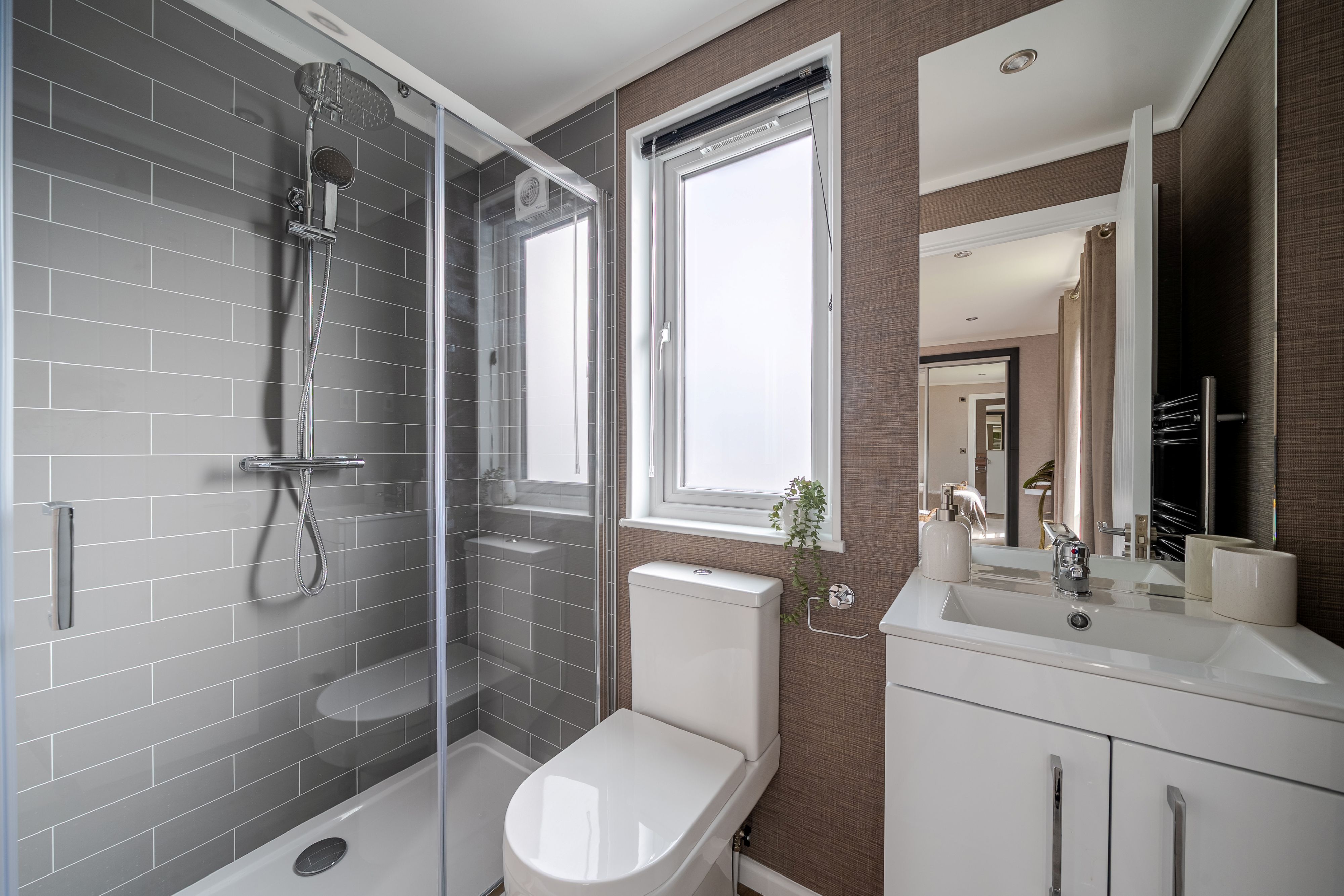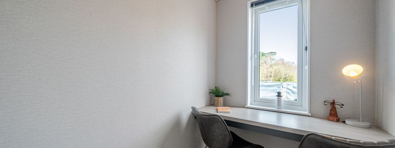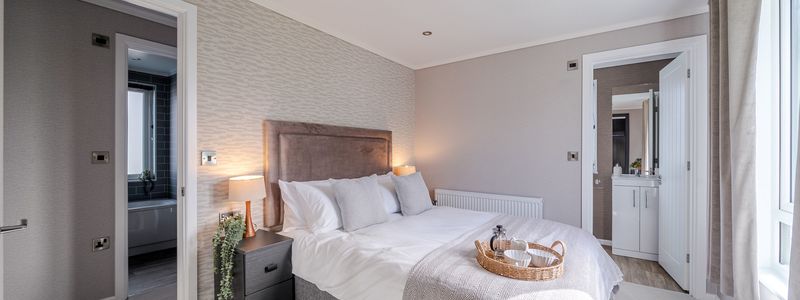 This fully furnished home offers a refined, tranquil lifestyle in one of Dorset’s most sought-after locations. Vaulted ceilings and elegant details, like a grey slat feature wall and oak-effect alcove with ambient lighting, create a lounge that balances comfort and sophistication. The kitchen impresses with matt grey cabinetry, copper-accented stone-effect worktops, and premium Bosch appliances, flowing seamlessly into a stylish dining space. The main bathroom features a full-size bath, waterfall shower, LED mirror, and contemporary finishes for everyday luxury. The primary bedroom is a serene retreat, complete with a king-size bed, sliding mirrored wardrobe, and elegant furnishings.