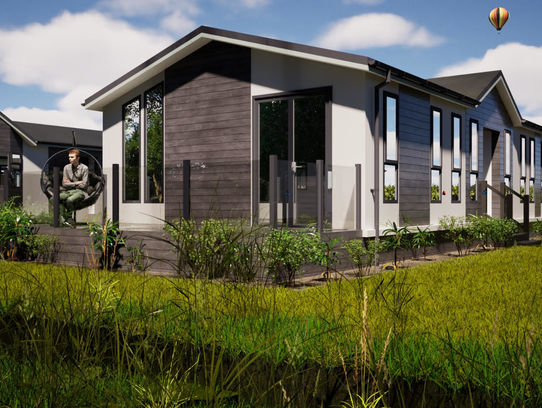 This beautiful two-bedroom, two-bathroom home (including en-suite) features a spacious open-plan lounge, kitchen and dining area, with large windows and French doors filling the space with natural light.