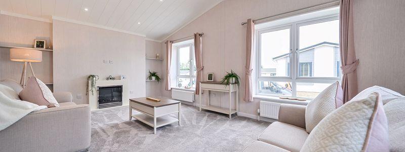 Discover the perfect blend of style, comfort, and practicality with the Image Park Bungalow – a beautifully presented two-bedroom, two-bathroom detached home with private driveway, set in a peaceful, welcoming community. Its modern CanExel cladding, boxed-out windows, and recessed entrance beneath a roof dormer create striking curb appeal. Inside, the central kitchen-diner features integrated appliances, an electric oven and hob, and a cosy dining area. The lounge offers a relaxing space with a contemporary fire suite and two ‘Lonsdale’ sofas. The main bedroom includes a dressing area, fitted wardrobes, and en-suite with quadrant shower; the second bedroom is equally inviting. A sleek main bathroom, vaulted ceilings, and BS 3632 residential spec add comfort and peace of mind. With a 40-year roof guarantee and double glazing, this home offers more than just a place to live – it’s a lifestyle.