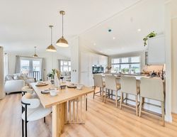 The striking façade, with its stucco finish, slate tiling, and CanExel cladding, sets the tone for the sophisticated interior. Step inside to an expansive open-plan living space, where vaulted panelled ceilings and rustic-chic styling create an atmosphere of quality and ease. The L-shaped lounge and dining area flow seamlessly into a premium kitchen, complete with larder units, ceramic sink, breakfast bar, and top-tier integrated appliances. The primary bedroom offers a super-king-size bed, fitted wardrobes, dressing table, and a luxurious en-suite with a rain shower. A second double bedroom and a beautifully tiled main bathroom provide comfort and style for guests