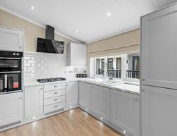 The Omar Anniversary park home is an exceptional choice for those seeking luxurious, modern living within a peaceful and vibrant community. This award-winning home was designed to celebrate Omar’s 50th anniversary and offers a perfect blend of innovative design and practicality. With a distinctive exterior featuring boxed-out windows, elegant cladding, and a recessed front door, this park home exudes curb appeal. Inside, the layout is designed for comfort and style, with calming tones, luxurious furnishings, and an open-plan living area that seamlessly flows into a bright sunroom, ideal for relaxation.