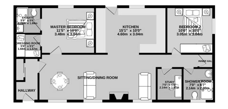 - Centre lounge and kitchen with bedrooms at either end of the home