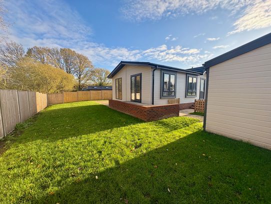 Introducing the Prestige Sofia at 54 The Paddocks, a beautifully crafted residential park home, offering contemporary living with timeless elegance. At 40’ x 22’, the Sofia may be our smallest home at The Paddocks, but it is full of character and charm, making it the perfect choice for a single professional or a couple looking to downsize to a tranquil, country setting. The home features a generous dual-aspect lounge that flows effortlessly through grand, fully-glazed double doors into the expansive kitchen and dining area. This seamless connection between spaces creates an elegant and open living environment, designed for both relaxation and entertaining. 2 bedroom 2 bathrooms. This home is complemented by a detached garage and spacious driveway. The property also boasts a beautifully landscaped garden with plenty of room to enjoy the natural surroundings.