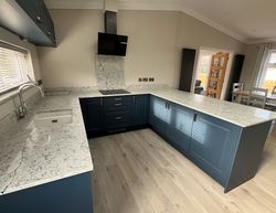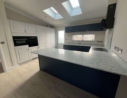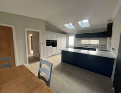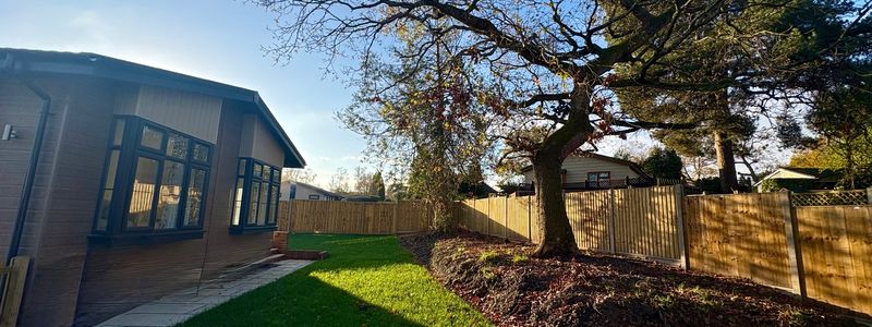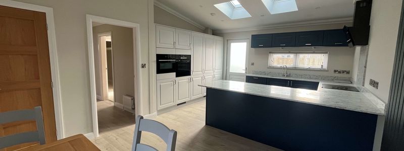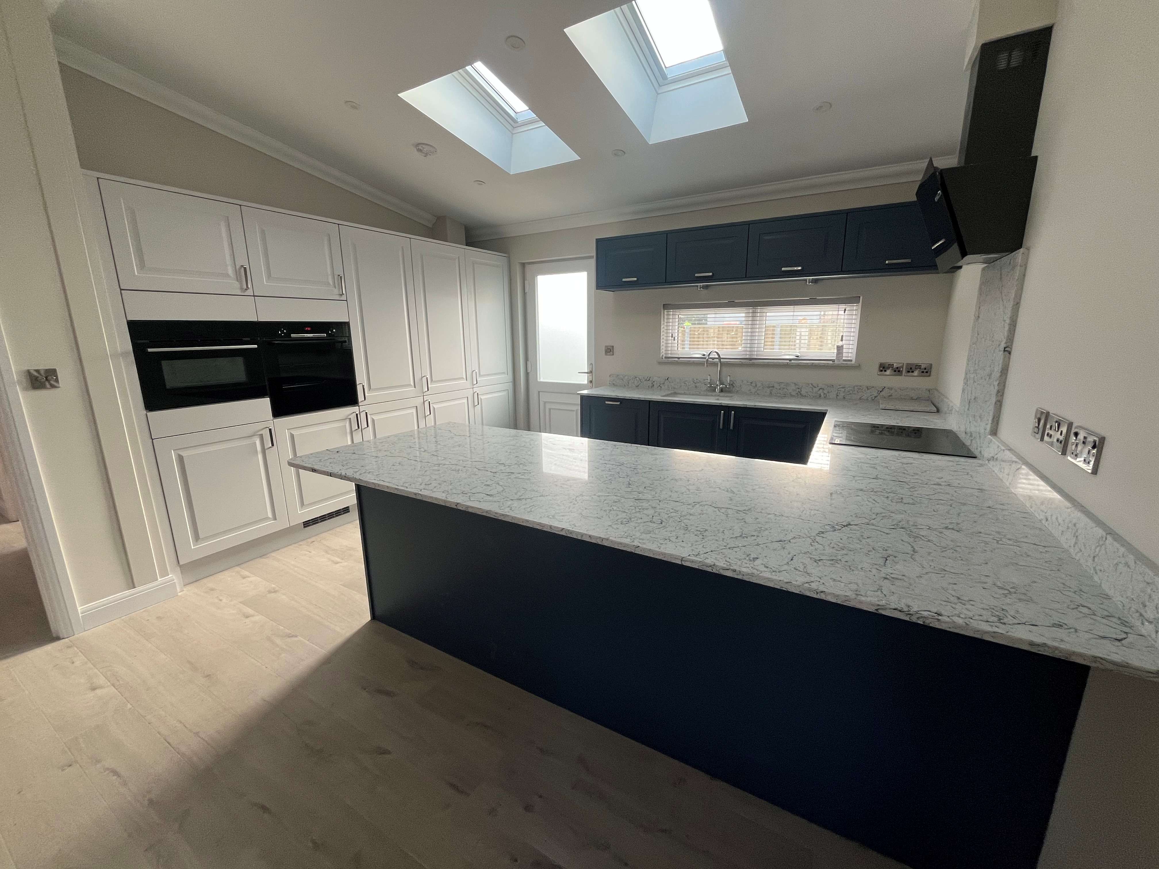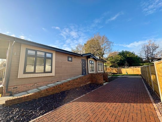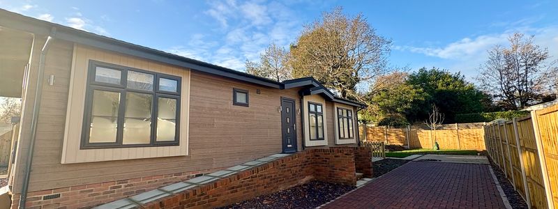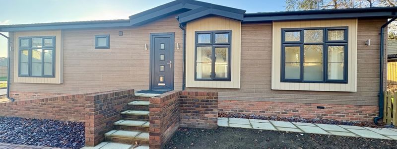 The Manor Olney at 52 The Paddocks - 46'x 22' is a stunning new residential home at The Paddocks. This home blends contemporary design with exceptional craftsmanship. The Olney features a striking double apex design with Canexel cladding, enhancing its appeal. Inside, the fully furnished modern kitchen, in a striking contemporary navy-blue finish comes equipped with premium AEG integrated appliances, including a double eye-level oven, fridge/ freezer, dishwasher, Belfast sink, and Nile Grigio Fantasy Shaw stone worktops. The entrance hall, with glass panels, maximises natural light and leads into the kitchen/diner on the left and two bedrooms on the right. The lounge includes French doors opening onto the garden, while the home also boasts a study, family bathroom, en-suite to the master bedroom, and a walk-in wardrobe. Detached garage with space for two cars on driveway.Beautifully landscaped garden and ramps front and back.