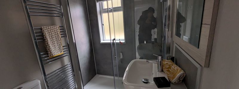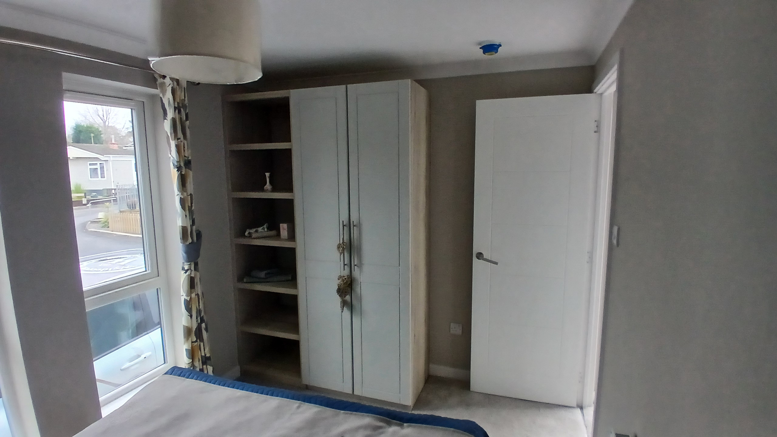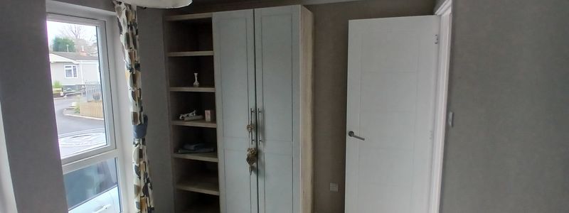 Accommodation comprises of one double bedroom with double bed, bedside tables, wardrobe and storage shelving and a bathroom that has a large walk-in shower.