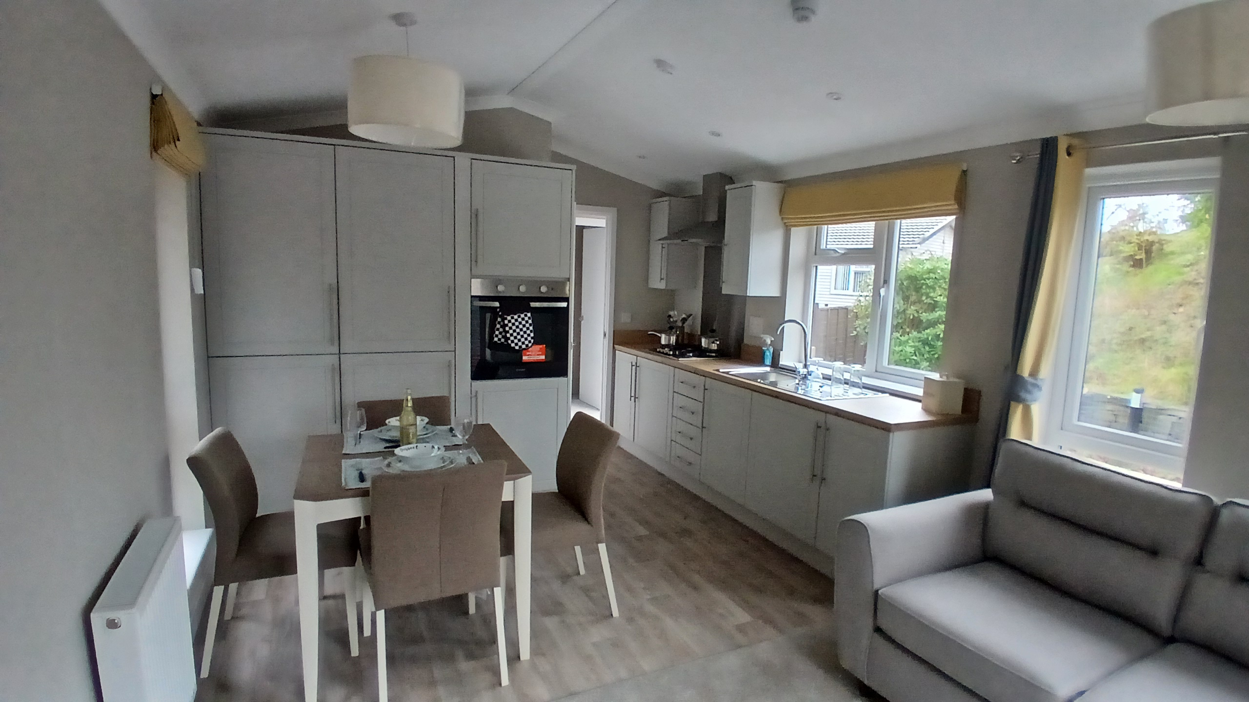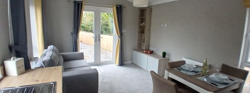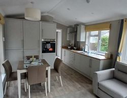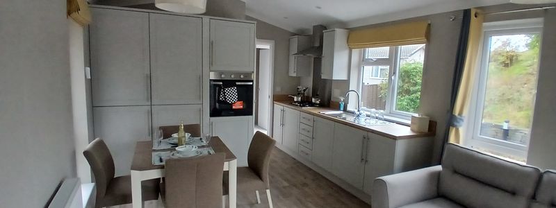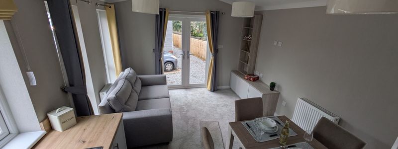 The main living area offers vaulted ceilings to help maximise the feeling of light and give a sense of extra space. It is of open plan design and includes a fully fitted kitchen with integrated appliances along with ample storage.he lounge/dining area offers a dining table and chairs for 4 people, a comfy sofa and a tv stand with storage and shelving, the patio doors are located central to the lounge and let in plenty of light whilst also giving access to the private garden.